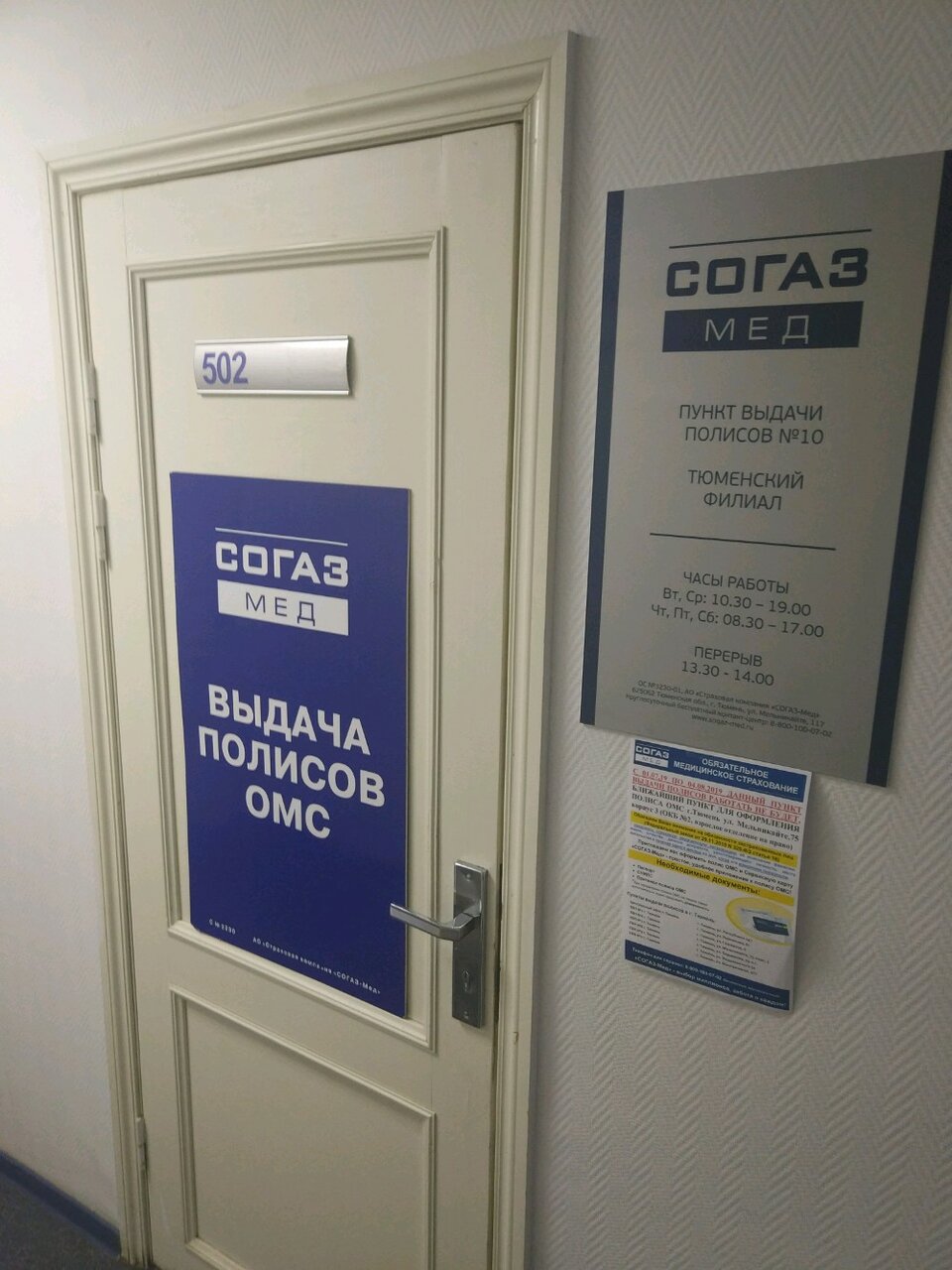 | Тюменский филиал АО «Страховая компания «СОГАЗ-Мед» Адрес: г. Тюмень, ул. Луначарского, 18/1 Телефон: 8-800-100-07-02 – круглосуточная «горячая линия» (звонок по России бесплатный) E-mail: tumen@sogaz-med. Адрес сайта: www.sogaz-med.ru Видео о получении полиса ОМС (Тюменский филиал АО «Страховая компания «СОГАЗ-Мед») Защита прав застрахованных в системе ОМС Пункты выдачи полисов Тюменского филиала АО «Страховая компания «СОГАЗ-Мед» Изменения в системе обязательного медицинского страхования | |