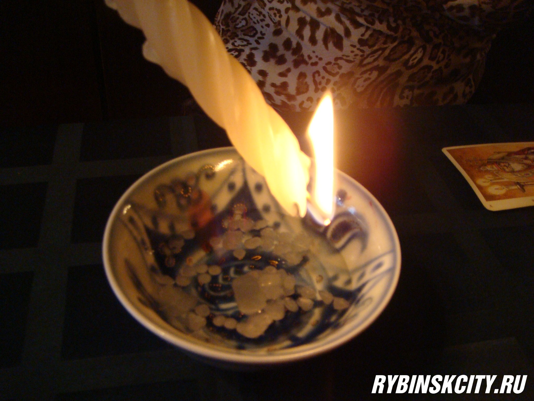 По истечению времени нужно открыть глаза, потушить свечи и проговорить: